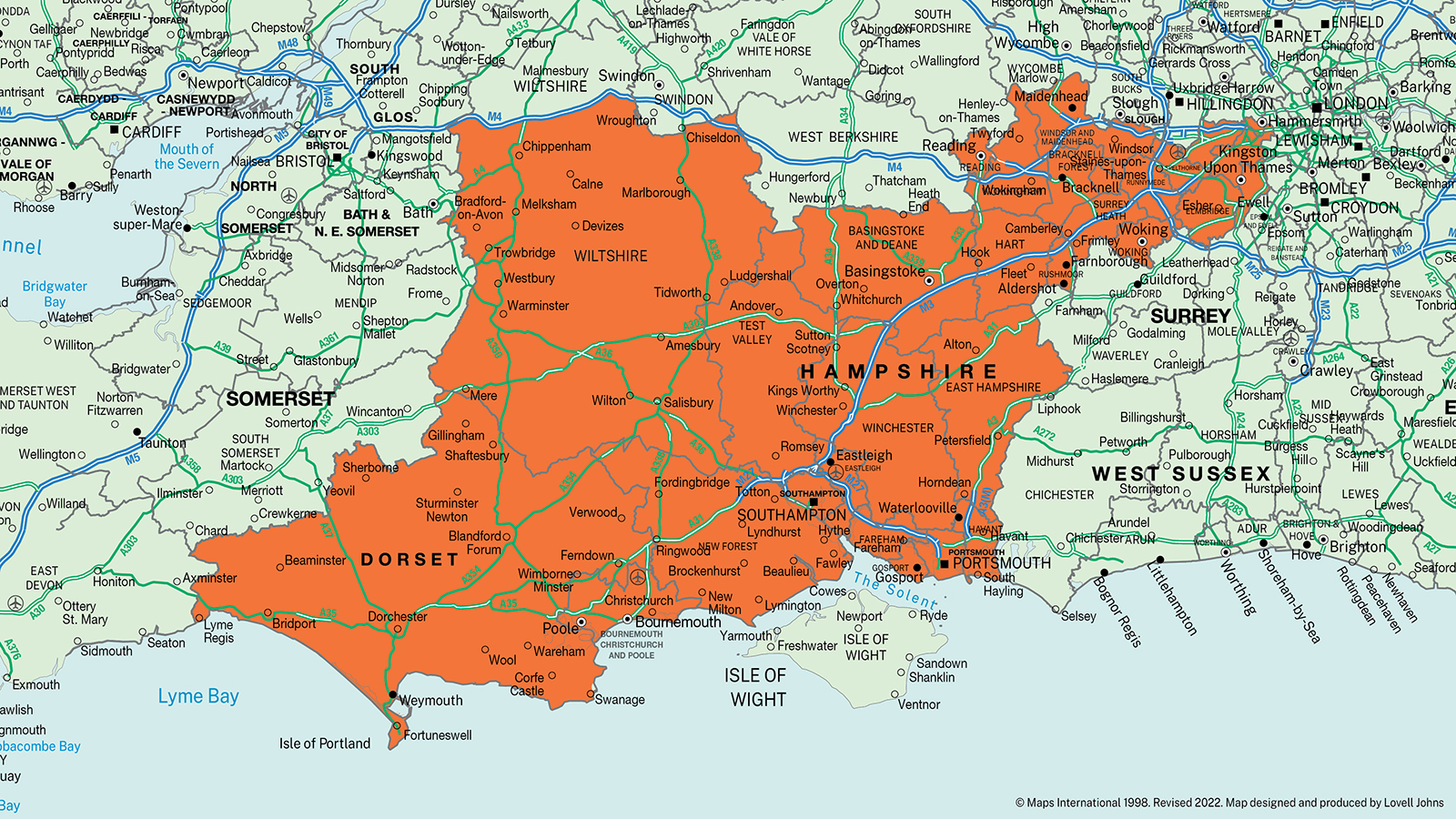 Dorset, Hampshire and Southern Wiltshire.